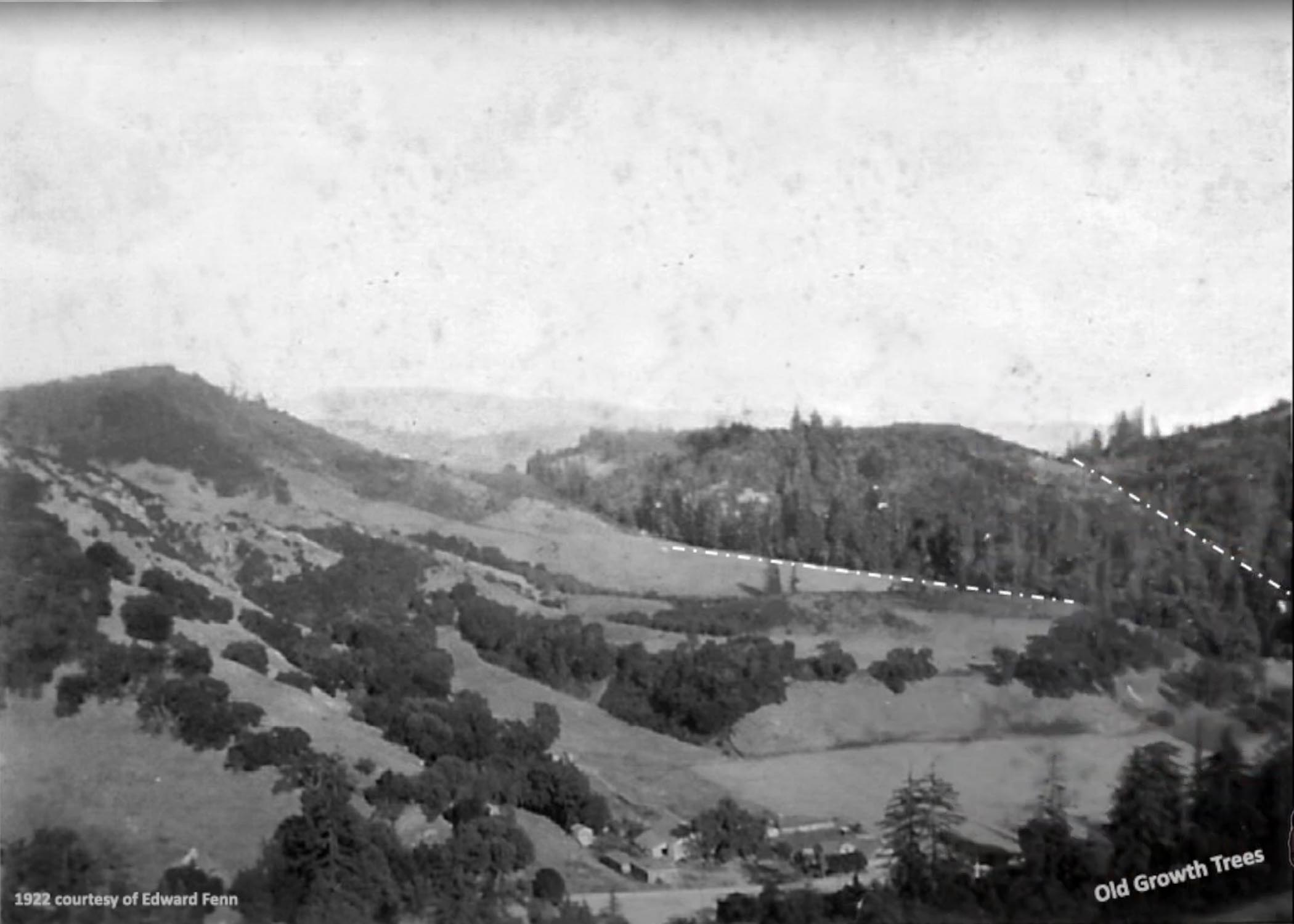 One day in the early Spring of 2011, I received an email from an address containing the words “Old Man”. His message asked whether I knew anything about the Northwest corner of where Mt. Charlie Road dead-ends into, what he referred to as “The County Road.” I was aware of that name being used in the past to describe what is now the Old Santa Cruz Highway, so I answered that I had lived on that corner for over 40 years. When he asked if he and his family could visit, I said, “Of course”, and we settled on a date and time.